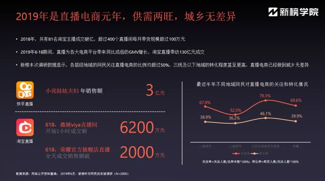 2018年雙11,快手的“散打哥”一場直播賣貨1.6個億;還有做服裝的主播小亮娃娃夫婦,從擺地?cái)傞_始,到現(xiàn)在能在快手上一年賣3.2億的服裝,同時我們也看到李佳琦、薇婭在淘寶直播上的超級帶貨能力,讓人咂舌,感到不可思議的同時也讓人有了更多期待。