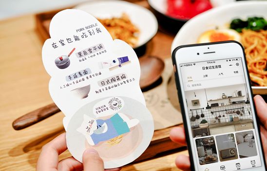 2018年,日食記在上海開(kāi)了首家線下店,只有五個(gè)座位,被評(píng)為在上海最難吃到的面館,平均要排五個(gè)小時(shí)才能吃到。在門(mén)店里,日食記提供商品清單及小程序碼,用戶(hù)可以掃碼下單,實(shí)現(xiàn)線上、線下互相引流。