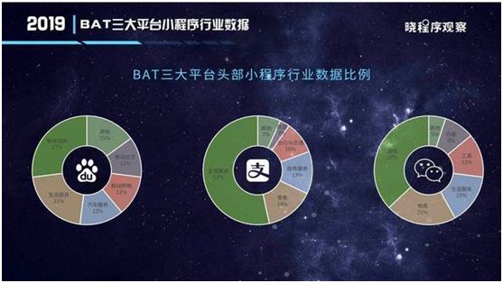 目前,BAT三家的小程序生態(tài)側(cè)重各有不同。微信的小程序生態(tài)側(cè)重游戲與電商;支付寶小程序中生活服務(wù)占比最高;百度小程序分發(fā)的內(nèi)容則以移動視頻和生活服務(wù)為主。