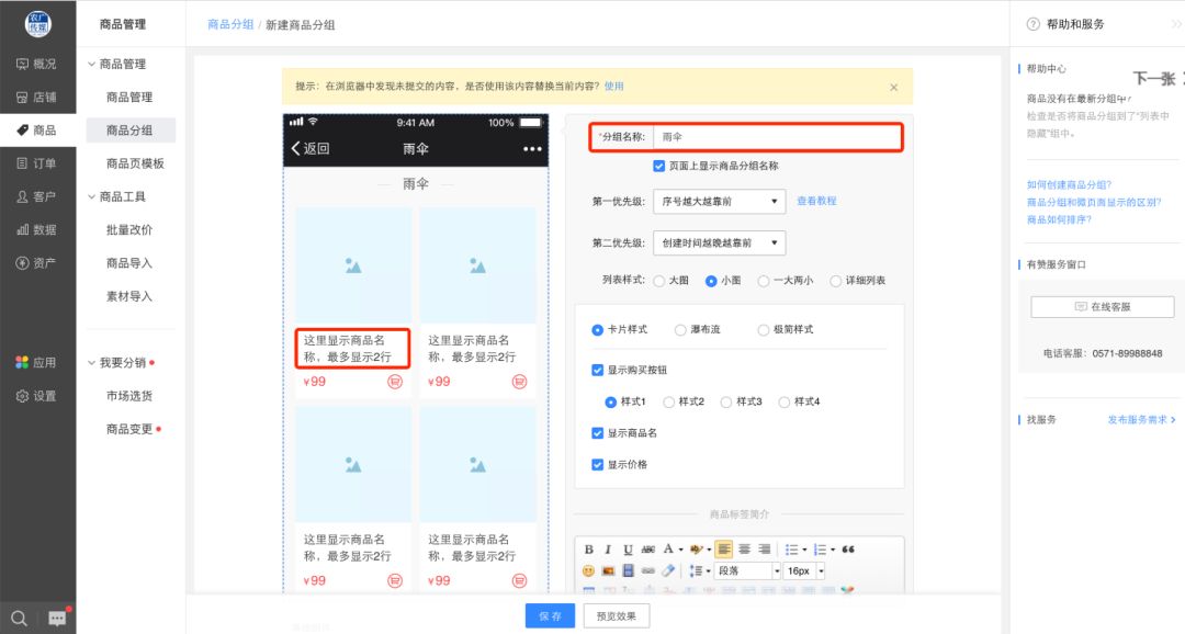 注意:使用商品分組功能時(shí),記得展示商品名稱。