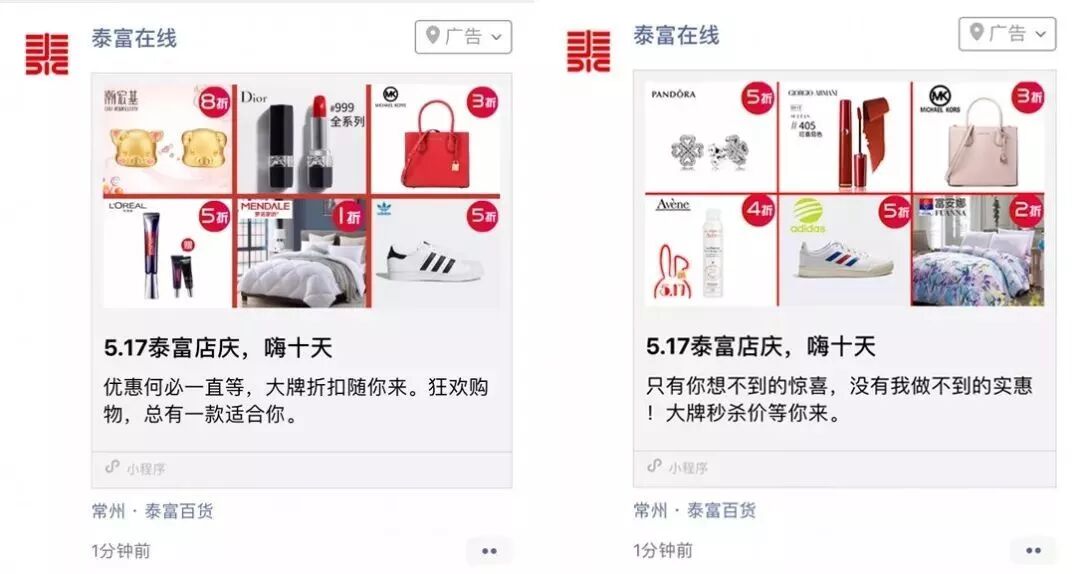 這次活動是泰富百貨 25 周年店慶,活動力度更是史無前例,我們想通過此次投放,把店慶活動宣傳出去,并引導用戶到店參與活動。目前的 RIO 高達 58,商場的銷售額有很大提升,希望在之后的投放中越來越好。