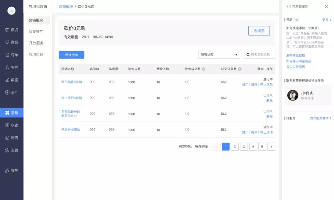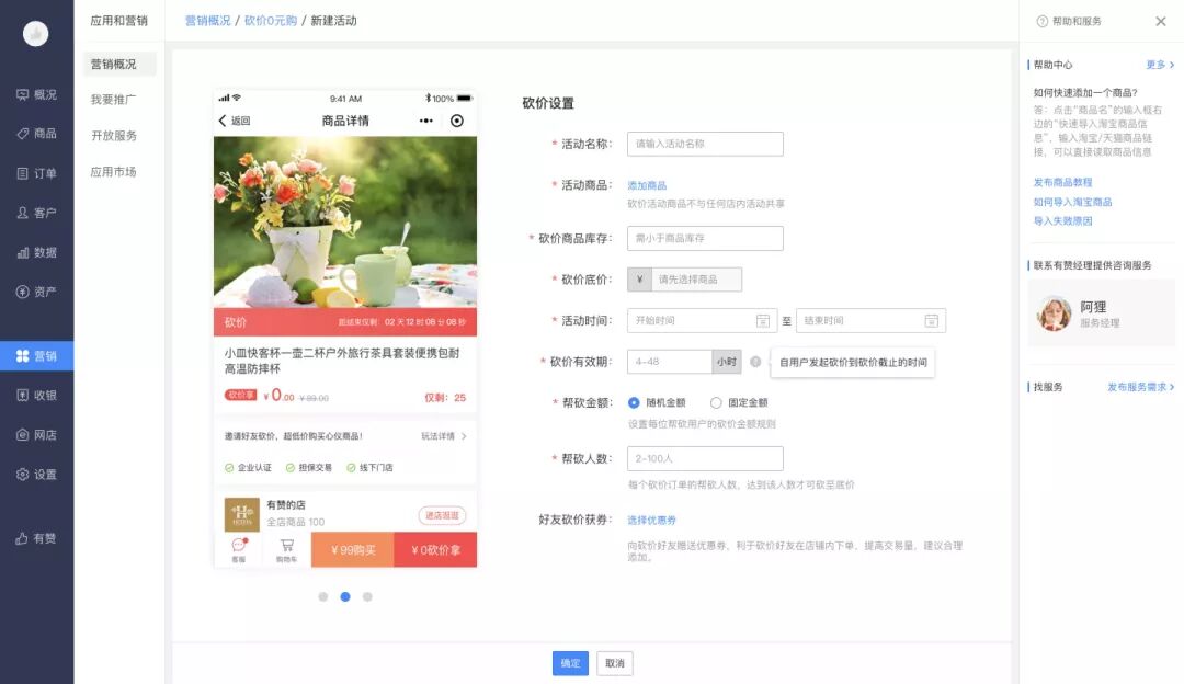 電腦端微商城后臺 - 營銷 - 營銷玩法 - 砍價0元購