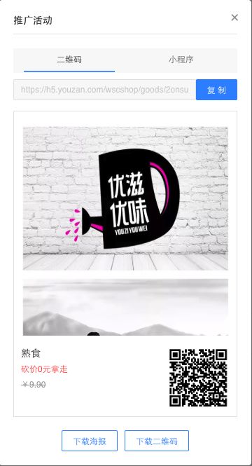 支持通過小程序碼和小程序海報快速推廣活動,吸引用戶參加