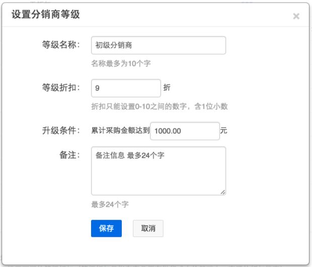(1)分銷后臺->分銷管理->等級管理