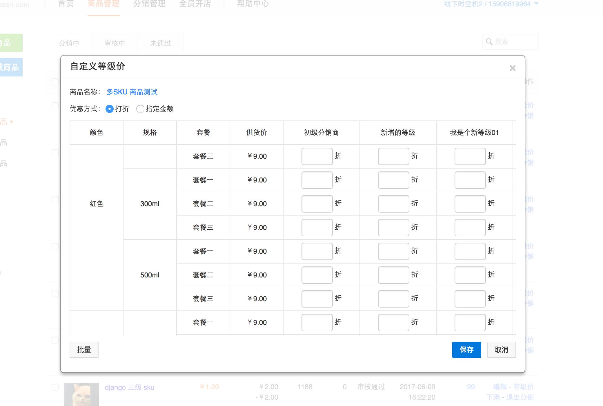 (2)分銷后臺->商品管理->等級價