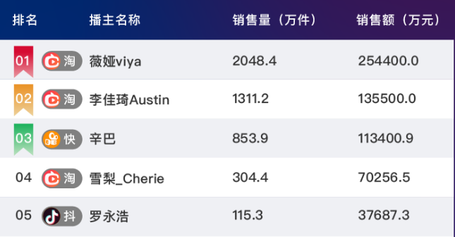 不同的機(jī)構(gòu)、不同的工種之間,薪資待遇的彈性空間也會比較大。一家主做素人主播孵化的機(jī)構(gòu)工作人員告訴毒眸,主播一周直播三次,每次4小時左右,其他時間在拍攝短視頻、記錄產(chǎn)品要點,主播收入主要按照銷售額進(jìn)行分成,主播收入包含直播打賞收入的八成和帶貨利潤的兩成。他透露,所帶主播月收入為1萬元-2萬元。毒眸了解到,代播機(jī)構(gòu)的主播收入按小時付費,市場價格一般是300元/時。據(jù)“電商在線”報道,頭部代播機(jī)構(gòu)阿茉文化合伙人夕歌說,一個代播主播在淡季的薪資有一兩萬,大促時能達(dá)到三四萬。收入差距源自銷售規(guī)模的差距。頭部帶貨主播的銷售額遠(yuǎn)高于中腰部主播,頭部上億元,中腰部百萬元;其次,頭部主播的差距也非常明顯,TOP5主播的差距也越來越大。 據(jù)果集數(shù)據(jù)發(fā)布的8月帶貨主播GMV榜單,榜首“薇婭直播間”GMV為25.44億元,比李佳琦高了12億元;第三到第五分別是辛巴(11.34億元)、雪梨(7.03億元)、羅永浩(3.77億元),又和李佳琦拉開2-9億元的差距。而第50位主播的GMV為6395萬元,和薇婭相差35倍、跟李佳琦相差20倍。