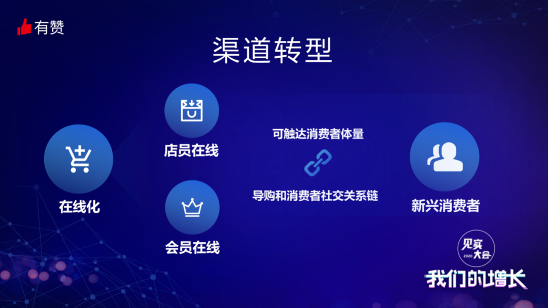 另外,在疫情刺激下,線下門店做了很多在線化動作,比如導(dǎo)購在線、會員在線、商品在線、直播貨架在線。