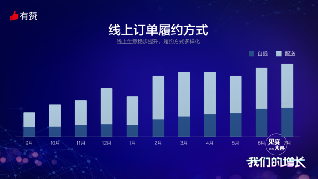 線上交易多了后,商家靠什么方式履約給消費(fèi)者,是一個很大的挑戰(zhàn),如商家有沒有到店自提,有沒有同城配送。之前疫情嚴(yán)重時期,自提和配送的訂單上漲趨勢非常明顯。