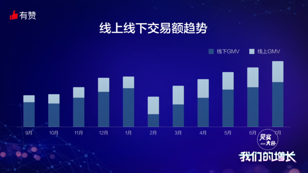 下圖是我們所看到的,從去年9月到今年7月,線上和線下GMV的增長。