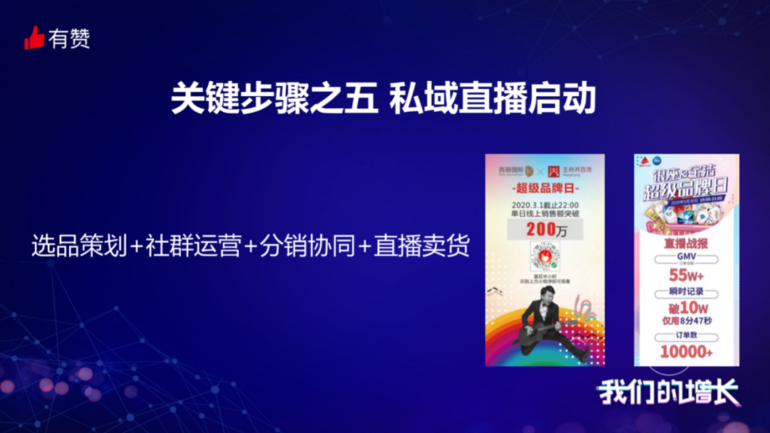 步驟之五,私域直播啟動。沒有線上平臺,沒有線下門店的升級,沒有全員分銷,沒有社群和個人號,私域直播是非常難啟動的。自己堅持做直播,雖然爆發(fā)沒有那么強(qiáng),但依然可以持續(xù)做。