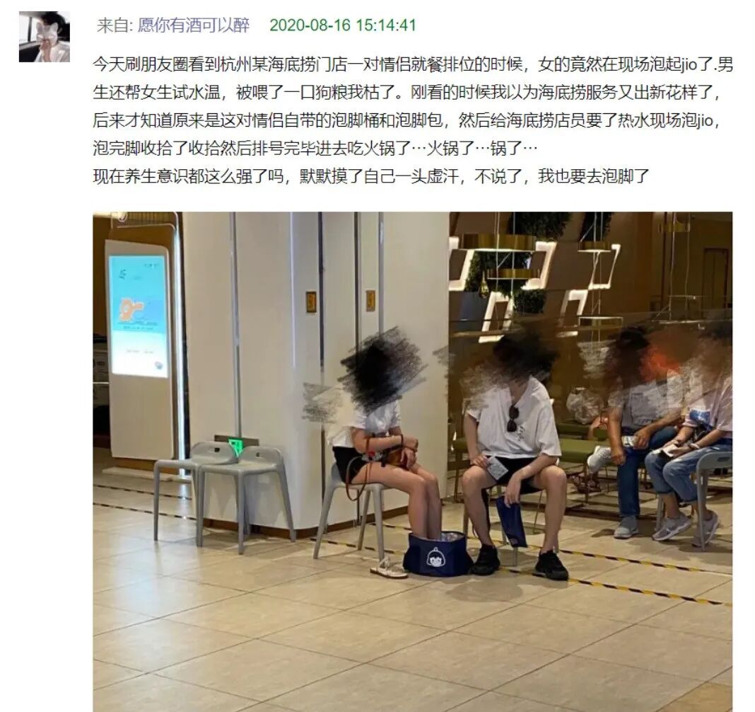 據(jù)網(wǎng)友爆料稱,自己在海底撈排隊(duì)時(shí),親見(jiàn)情侶當(dāng)場(chǎng)泡jio,還有海底撈工作人員端茶送水,場(chǎng)面一度相當(dāng)愜意↓