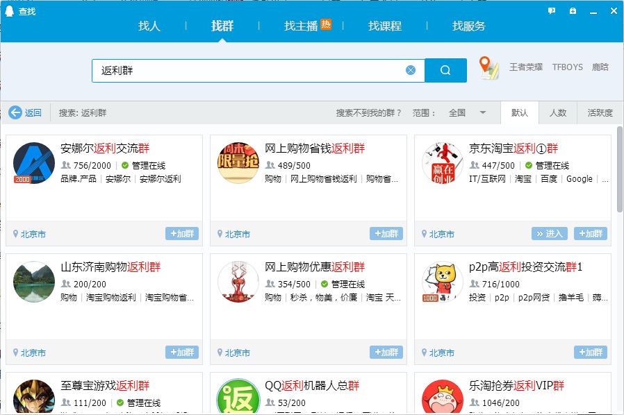 通過搜索關(guān)鍵詞,進(jìn)入屬性相匹配的用戶群里。