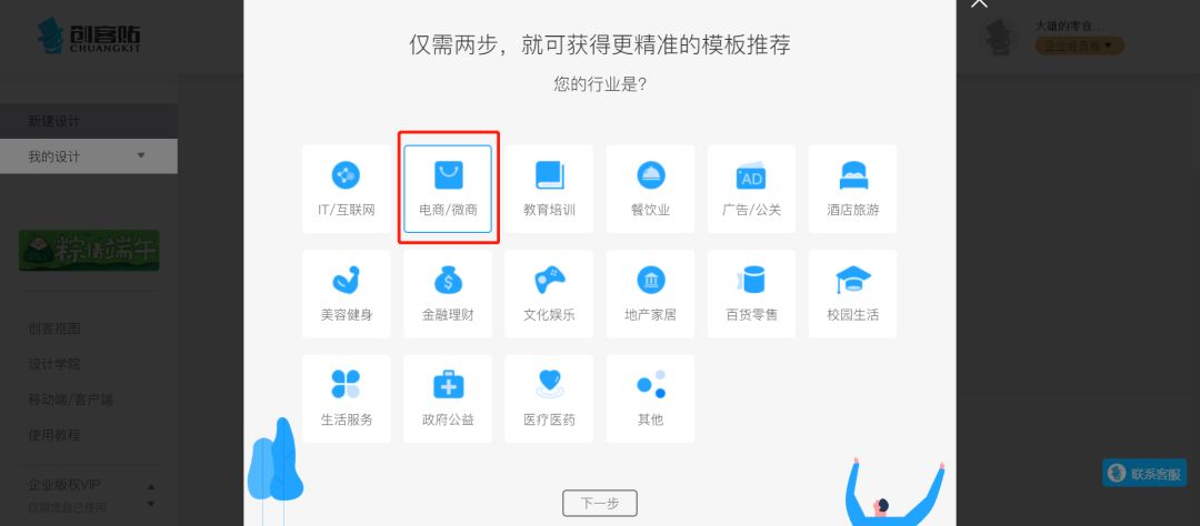 進(jìn)入創(chuàng)客貼有贊商家專屬設(shè)計(jì)頁面后,選擇你要設(shè)計(jì)的圖片類型,并進(jìn)入模板庫(kù)選擇一款你心儀的模板。