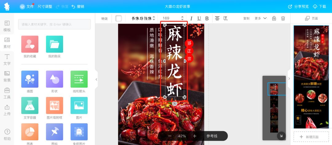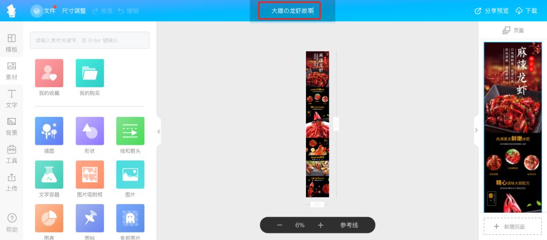 確認(rèn)模板后,在設(shè)計(jì)工具中編輯你要修改的文字、圖片并加入你想要的插圖等,體驗(yàn)變身設(shè)計(jì)師的快感,同時(shí)后臺(tái)會(huì)同步保存你所有的設(shè)計(jì)操作,無需再手動(dòng)去確認(rèn)。
