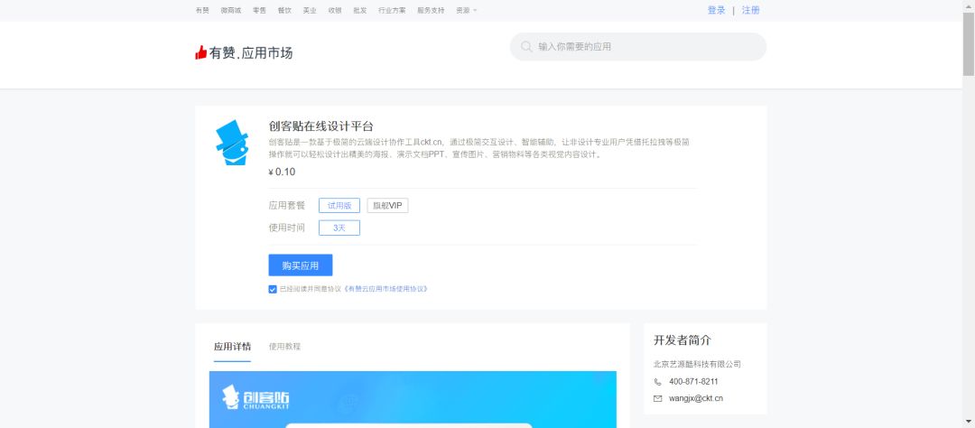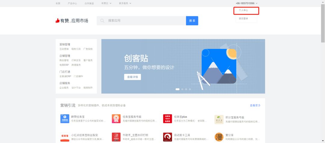 創(chuàng)客貼目前已入駐有贊云應(yīng)用市場(chǎng)