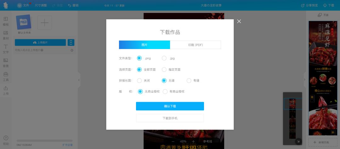 設(shè)計(jì)完成并點(diǎn)擊保存,可保存至本地或直接保存到手機(jī)使用。