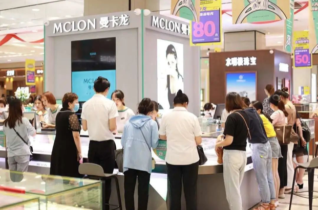 在曼卡龍珠寶專柜排隊(duì)核銷的顧客