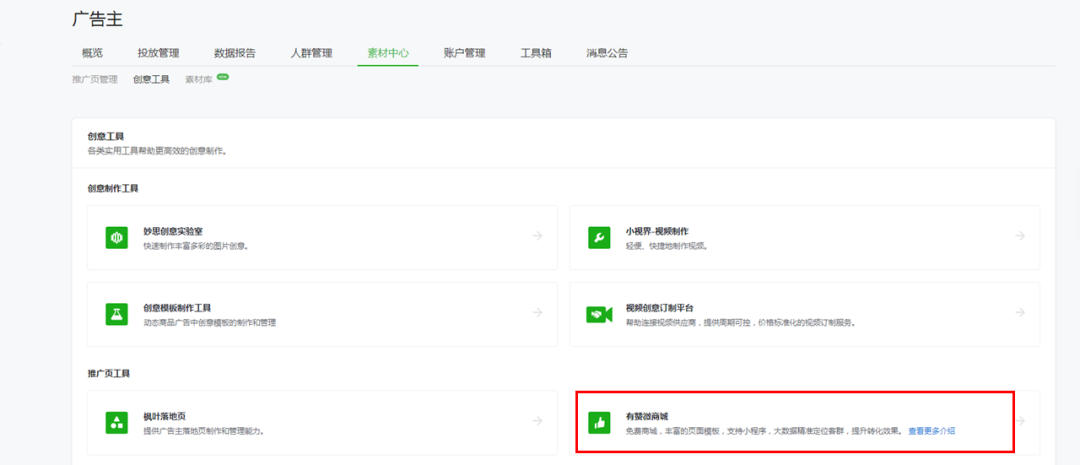 這意味著,所有廣告主都可直接在微信廣告投放端創(chuàng)建一個(gè)有贊店鋪小程序,更詳盡地展示廣告商品,促進(jìn)交易轉(zhuǎn)化。每個(gè)在微信公眾號(hào)、朋友圈等位置接收到廣告的消費(fèi)者,可直接進(jìn)入商家的有贊小程序下單,實(shí)現(xiàn)“所見(jiàn)即可買(mǎi)”。