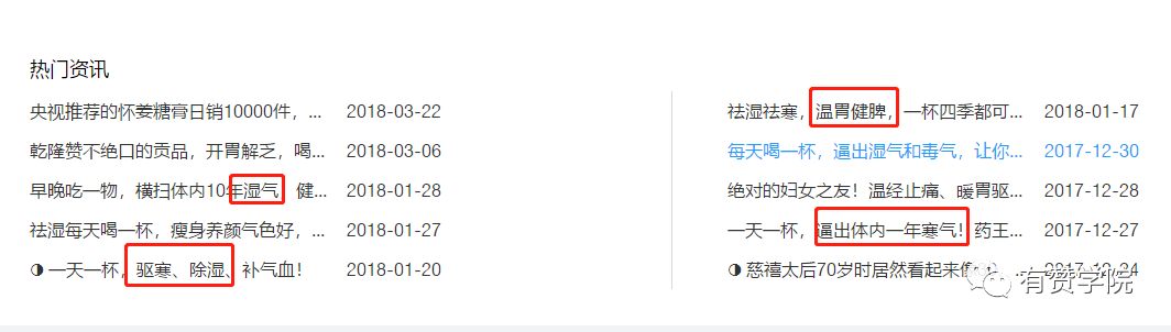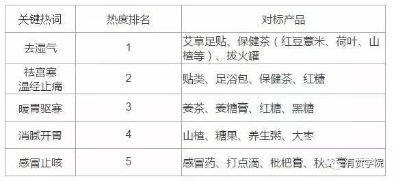 我們打開(kāi)淘寶或者百度推廣、TBI指數(shù)等,發(fā)現(xiàn)大部分需求傾向于功效導(dǎo)向,去寒濕氣、女性祛除宮寒、暖胃、開(kāi)胃、解乏、補(bǔ)氣血……是不是覺(jué)得太多關(guān)鍵詞了?