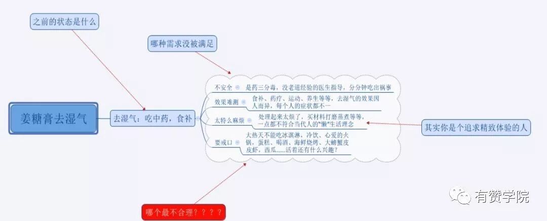 于是,我們構(gòu)想了如果沒(méi)姜糖膏去濕氣,之前的狀態(tài)是什么,那些需求沒(méi)有被滿足,哪個(gè)最不合理?